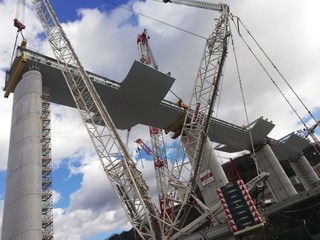 E’ stata issata oggi l’ottava campata del Nuovo Viadotto Polcevera, la terza nel lato levante del cantiere, tra le pile 13 e 14.