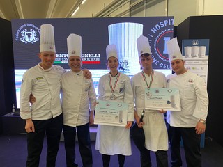 16 gli allievi iin gara da tutta Italia che si incontrano alla fiera di Riva del Garda (hospitality) per partecipare ad un concorso nazionale dove in 40 minuti devono preparare 3 porzioni di un piatto con tema libero