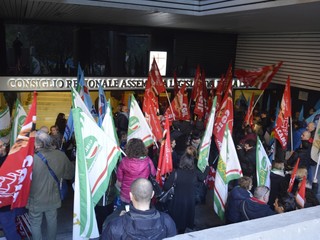Lavoratori in Regione per chiedere un passo indietro sul bando della ristorazione ospedaliera (VIDEO e FOTO)