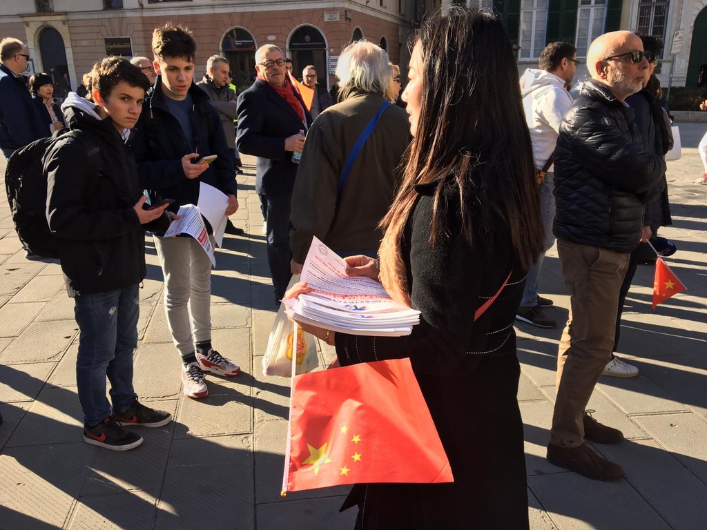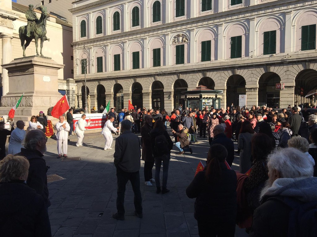 Si è svolta oggi la manifestazione promossa dalle associazioni cinesi e italo cinesi della Liguria, indetta a fronte dell'aumento di casi di intolleranza connessi al coronavirus, per ribadire la sicurezza di cibi e prodotti venduti nelle attività commerciali in Italia