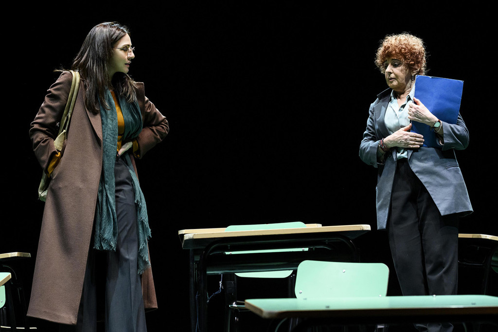 Scritto nel 2012 dalla pluripremiata autrice americana Johnna Adams, acclamato dai critici e messo in scena negli Stati Uniti da oltre quaranta produzioni diverse, lo spettacolo è presentato in Italia da Società per attori e Goldenart production con la regia di Serena Sinigaglia. È ambientato in una scuola pubblica nei dintorni di Chicago, ma potremmo in realtà trovarci ovunque: siamo nell’aula di una quinta elementare nell’ora di ricevimento, l’insegnante (Ludovica Modugno) sembra nervosa, attende una telefonata che sembra non arrivare mai; inaspettatamente si presenta al colloquio la madre (Ambra Angiolini) di un suo allievo che vuole parlarle. Suo figlio alcuni giorni prima è stato sospeso, è tornato a casa pieno di lividi e lei vuole a tutti i costi capire il perché; è stato vittima di bullismo o forse lui stesso è stato un molestatore, forse l’insegnante l’ha trattato con asprezza? Cercare la verità è l’unica possibilità a cui aggrapparsi e solo un confronto durissimo tra le due donne potrà dare un senso al dolore, allo smarrimento e al loro reciproco, soffocante senso di colpa.