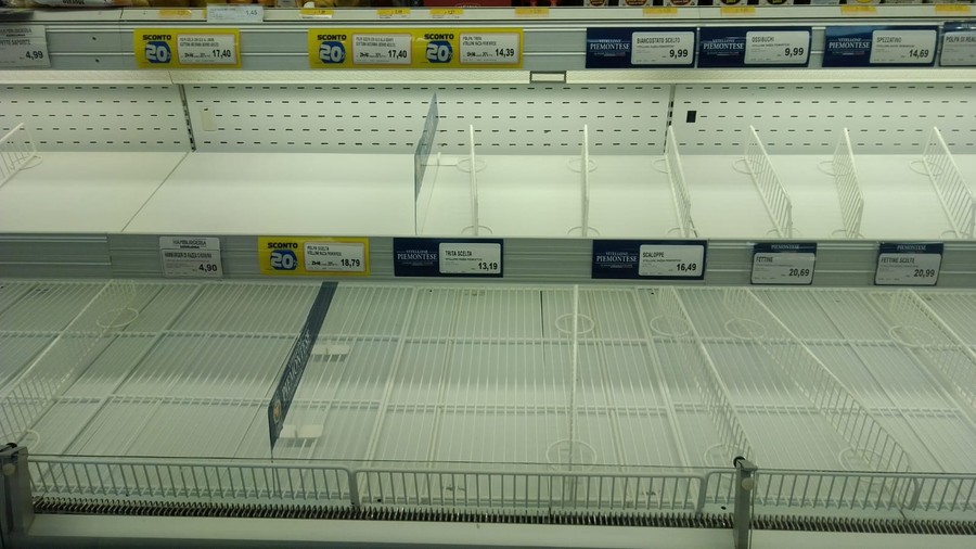 Gli scaffali di molti supermercati mostrano la faccia di uno degli effetti coronavirus
