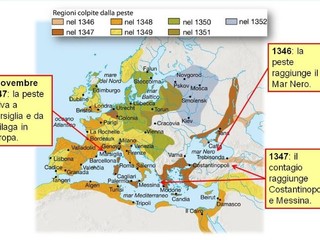 Nel 1347 colpì la nostra penisola dalla Sicilia fino al nord, risparmiando parzialmente Milano. Un anno dopo si allargò in Francia, Spagna, Inghilterra, Scozia e Irlanda. Nel 1353, dopo aver infettato tutta l’Europa, i focolai della malattia si ridussero fino a scomparire. Secondo studi moderni uccise almeno un terzo della popolazione del continente, provocando verosimilmente quasi 20 milioni di vittime. Alla fonte di tutto non c’era un virus (organismo non vivente che necessita di un ospite per propagarsi) ma bensì un batterio (organismo vivente in grado di autoriprodursi) che fu isolato solamente nel 1894. Il “Yersinia Pestis” si trasmetteva generalmente dai ratti agli uomini per mezzo delle pulci. La malattia, se non trattata adeguatamente, e nel 1347 non era di certo conosciuto alcun modo per farlo, era letale per quasi la totalità dei casi a seconda della forma con cui si era manifestata: bubbonica, setticemica o polmonare. La peste nera si diffuse nel Mediterraneo e in Europa, oltre che in Cina, con le carovane che percorrevano i diversi tratti della via della seta, a quel tempo straordinariamente attiva. La grande peste fu dunque un sottoprodotto non desiderato del grande sviluppo del commercio eurasiatico al principio del XIV secolo.