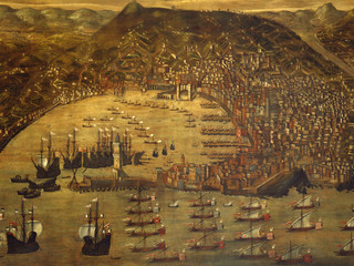 La prima foto, è una mappa dell’Italia del 1285 secondo le strategie dei Doria e degli Spinola, realizzata dal team di scenografi “Cri Eco” per il film “Mondi Paralleli, prigionieri del Tempo” in uscita in autunno 2020 nelle sale. L’ultima foto è un dipinto del porto di Genova nel Medioevo esposto al Museo Galata di Genova.
