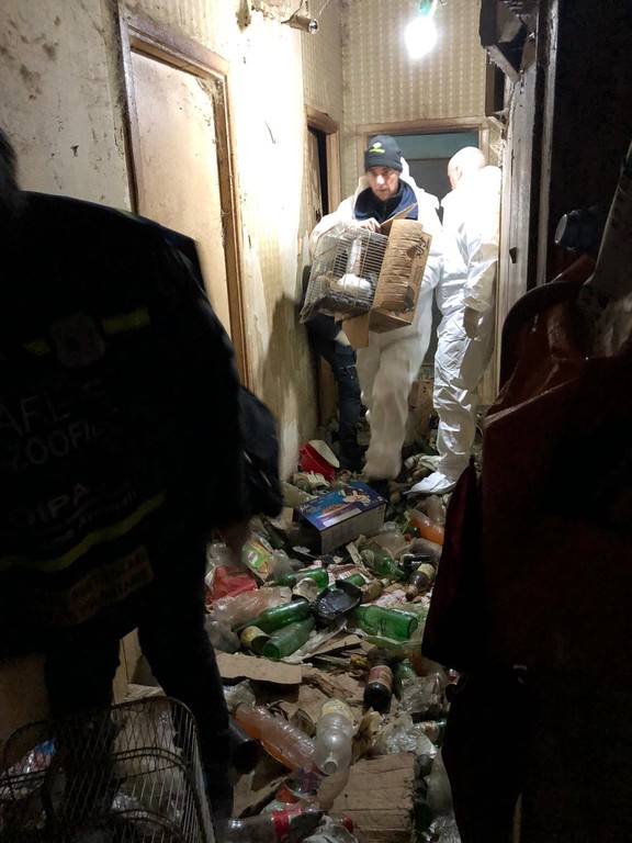 19 fra cani e gatti sequestrati alla proprietaria dalle guardie zoofile: gli animali erano tenuti chiusi in un appartamento sommerso da rifiuti e insetti (FOTO)