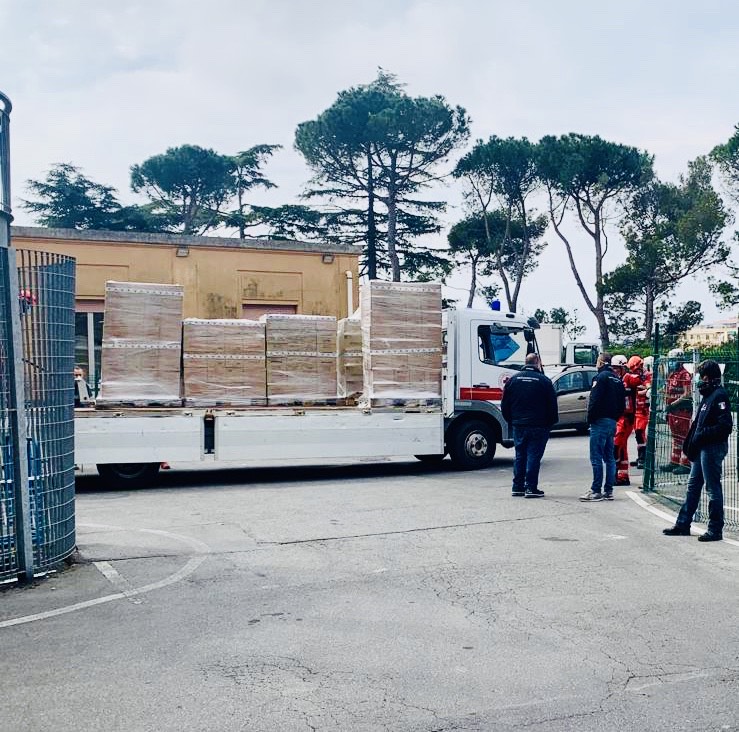 Emergenza coronavirus: 45 bancali di dispositivi di protezione individuale all'ospedale San Martino di Genova