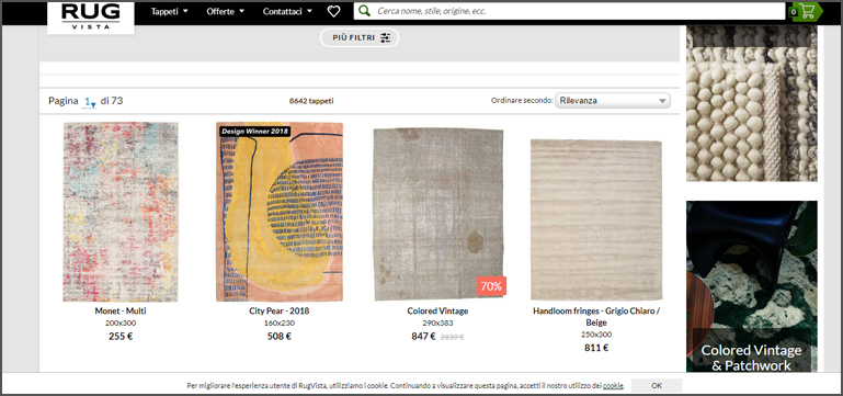 Vi capita spesso di cercare un tappeto dopo aver sfogliato le gallerie di Pinterest, per la maggior parte di ispirazione straniera, e non riuscire a reperirlo da nessuna parte? Ho pensato allora di accogliere nella mia lista questo portale, che raduna molti tessili, dai moderni di design, ai monocromatici, gli shaggy, i kilim, gli orientali, i ziegler annodati a mano e quelli per bambini.