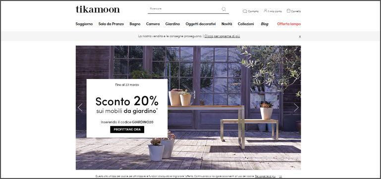 Home Office, arredi, decorazioni e outdoor sono alcune delle categorie in evidenza. I marchi sono interni, quindi nessun grande colosso ne fa parte, ma sono molti e vari gli oggetti che offrono una qualità-prezzo buona. Non raccoglie un unico genere, ma un numero alto di stili che vanno dallo scandinavo in legno chiaro al minimale, il monocromatico, il boho-chic e l'eccentrico con oggetti davvero attrattivi.