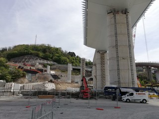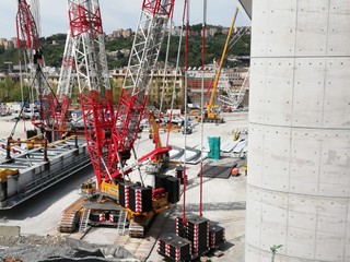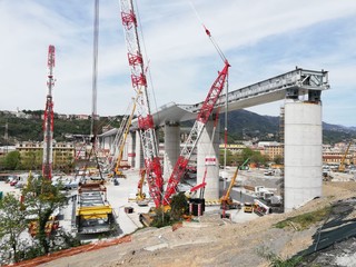 La campata, issata tra le pile 17 e 18 e del peso di circa 215 tonnellate, è stata sollevata ad un’altezza di 40 metri con una gru posta su Parco Campasso, e agganciata alle estremità delle sezioni di impalcato già montate negli scorsi giorni