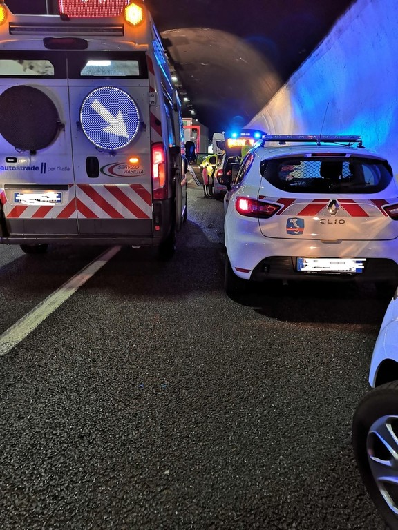 In direzione del confine di Stato. Sul posto il personale di Autostrade per l'Italia, la Polizia Stradale, i vigili del fuoco ed i mezzi di soccorso