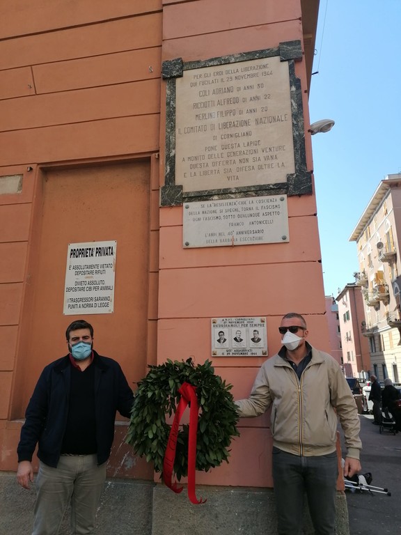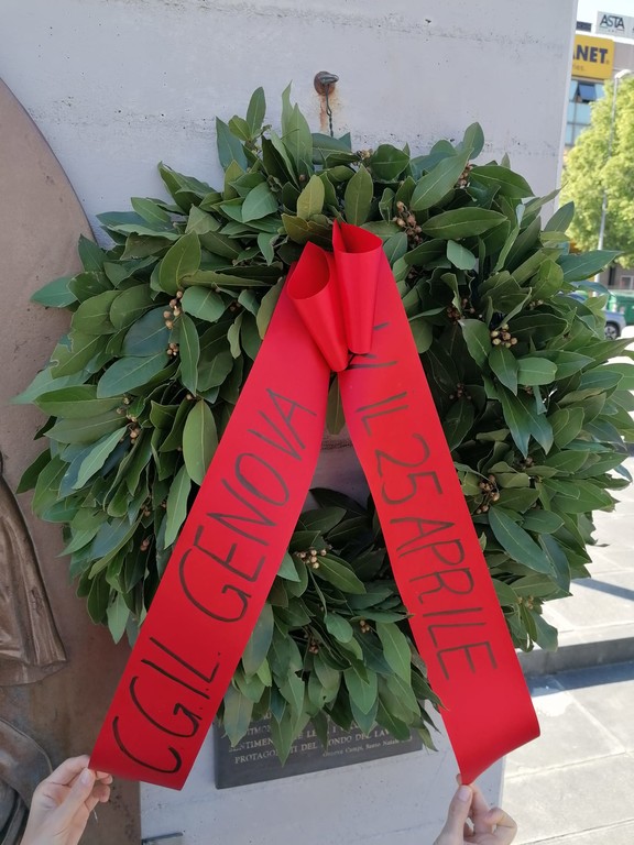 Igor Magni segretario generale di Cgil Genova: “È un 25 Aprile diverso, ma non per questo non dev’essere celebrato: abbiamo pensato che anche quest’anno fosse giusto non far mancare le nostre corone, è un piccolo gesto ma vuole essere un omaggio della Cgil alla Libertà, a coloro che ce l'hanno donata sacrificando la propria vita nonché un omaggio alla Costituzione che è la più bella del mondo perché contiene diritti e doveri in un equilibrio di regole che garantiscono tutti”.