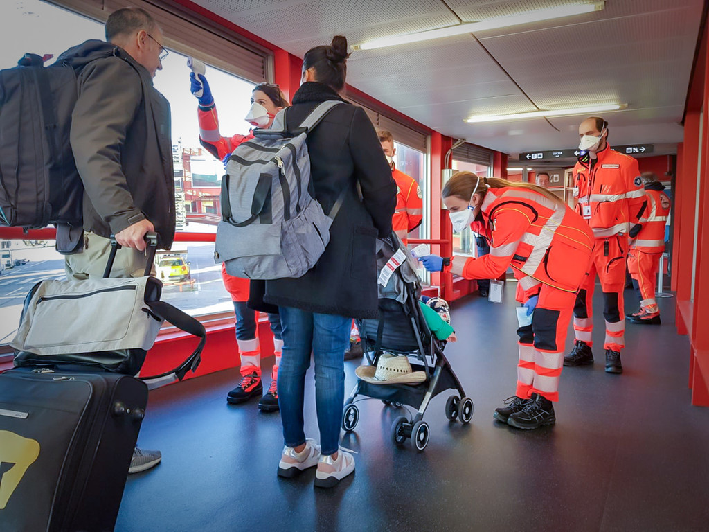 Questa attività è iniziata ben prima della Fase 1, prima del lockdown: il Dipartimento di Protezione Civile ci ha infatti attivati dal 5 febbraio per la rilevazione delle temperature dei viaggiatori in arrivo all’aeroporto di Genova. L'attività sta ancora continuando, seppur in misura molto ridotta per la cancellazione della maggior parte dei voli, e ha coinvolto al momento 770 volontari che hanno monitorato circa 30 mila passeggeri di 400 voli atterrati in questo periodo.