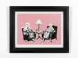 Banksy preferisce da sempre la diffusione orizzontale d’immagini rispetto alla creazione di oggetti unici, una lezione mutuata da Warhol col suo approccio seriale e l’uso metodico della serigrafia. Com’è stato ribadito da molte firme internazionali Banksy rappresenta la miglior evoluzione della pop art originaria, l’unico che ha connesso le radici del pop, la cultura hip hop, il graffitismo anni Ottanta ed i nuovi approcci del tempo digitale.