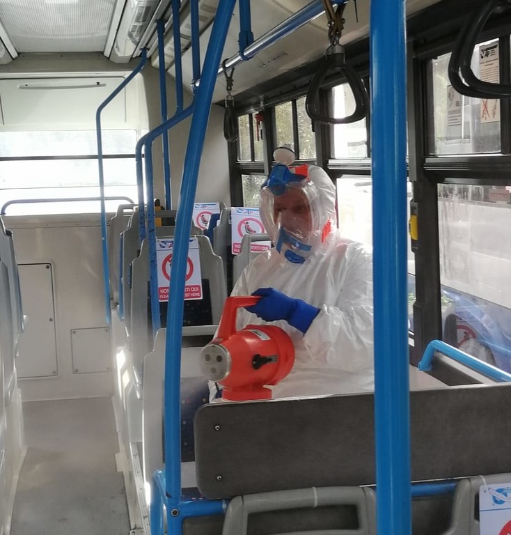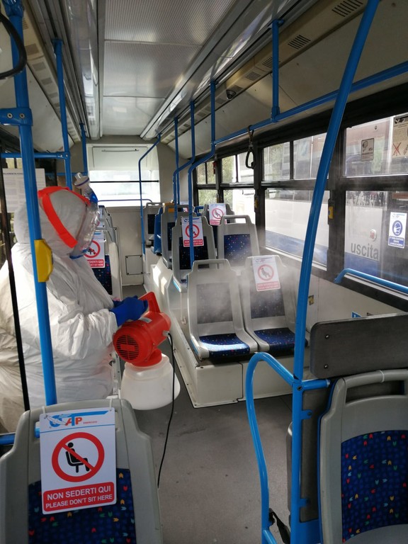 I bus sono stati e saranno sempre igienizzati quotidianamente nelle rimesse, con prodotti specifici a base di cloro e di sali quaternari di ammonio