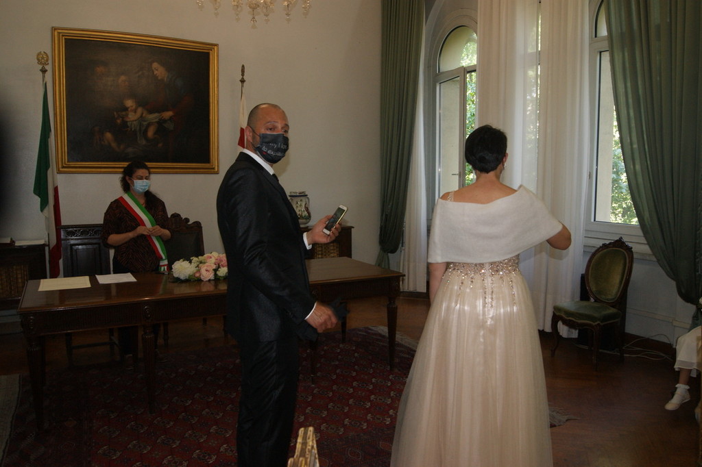 Ieri in corso Torino si sono sposati Jessica e Luca, distanziati, con guanti e mascherine, dopo aver organizzato il matrimonio in soli tre giorni (FOTO)