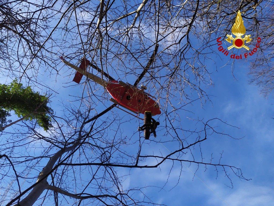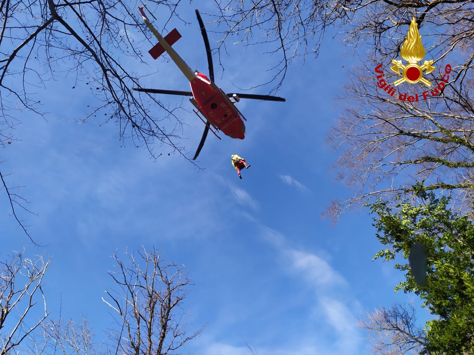 I vigili del fuoco soccorrono un'escursionista sul monte Righi [FOTO e VIDEO]