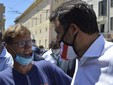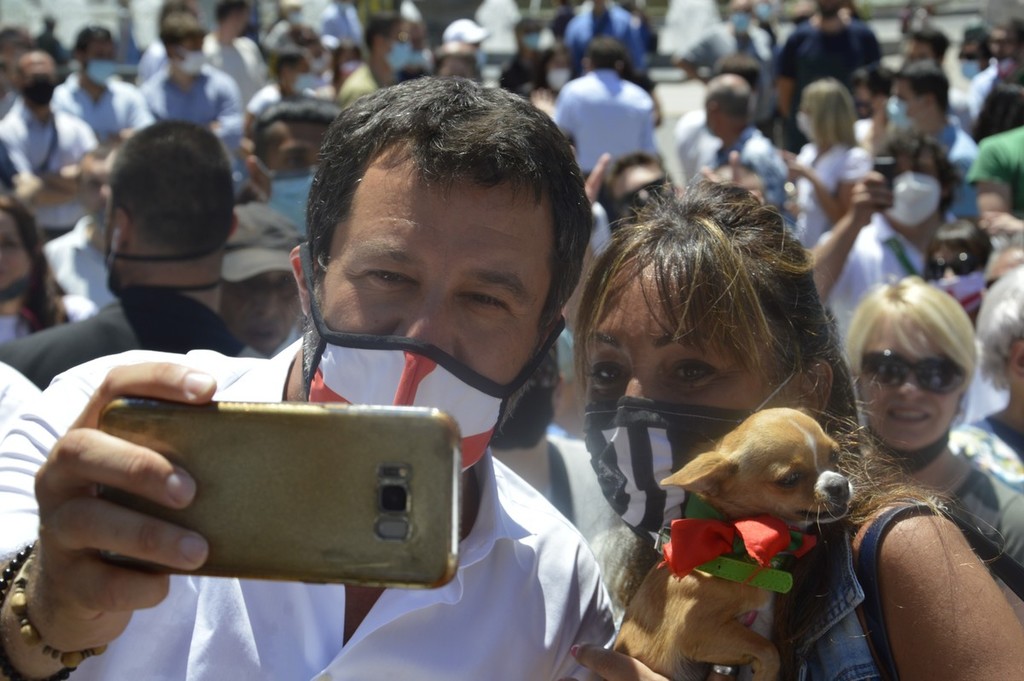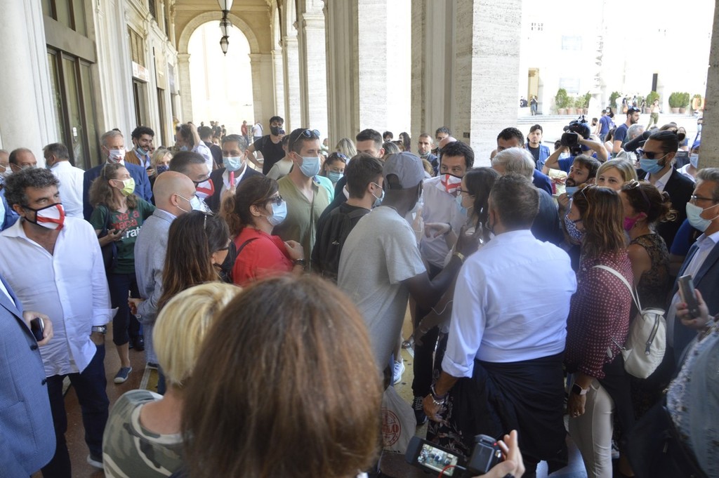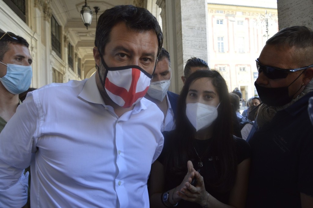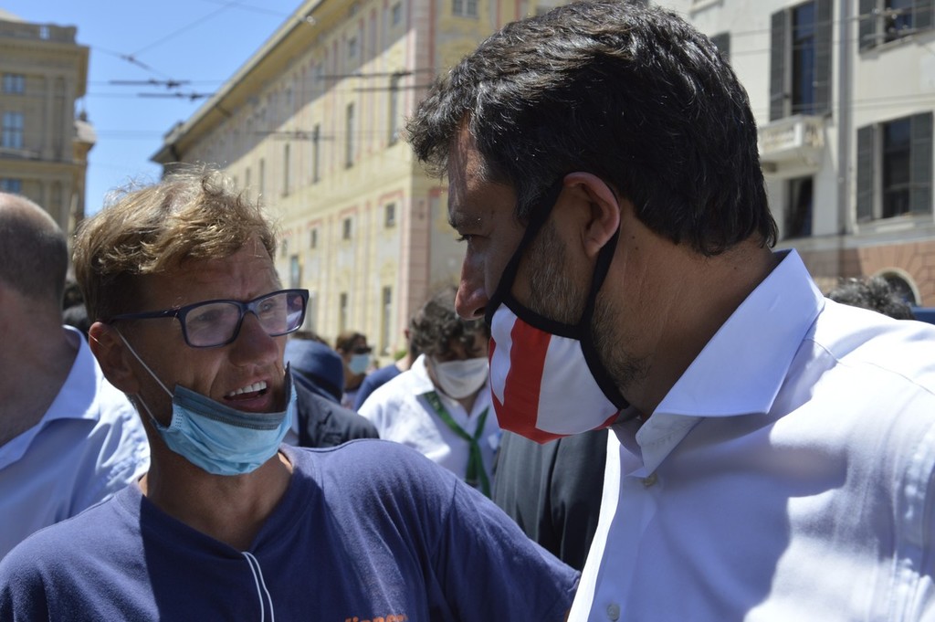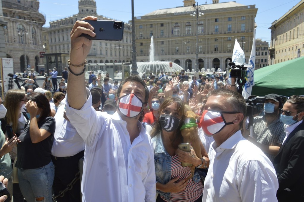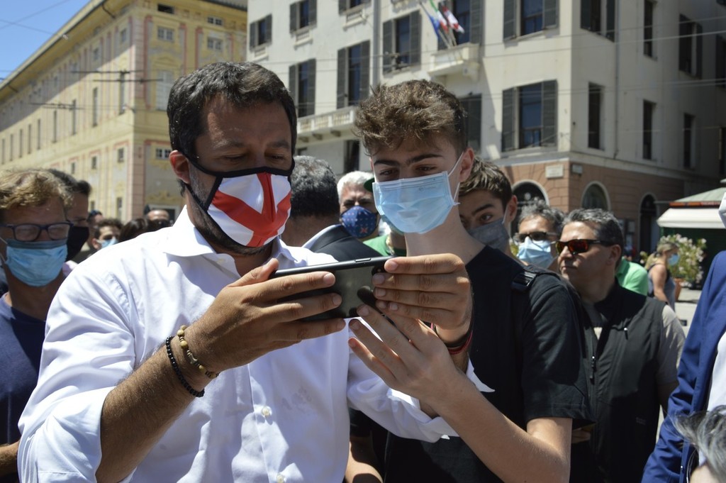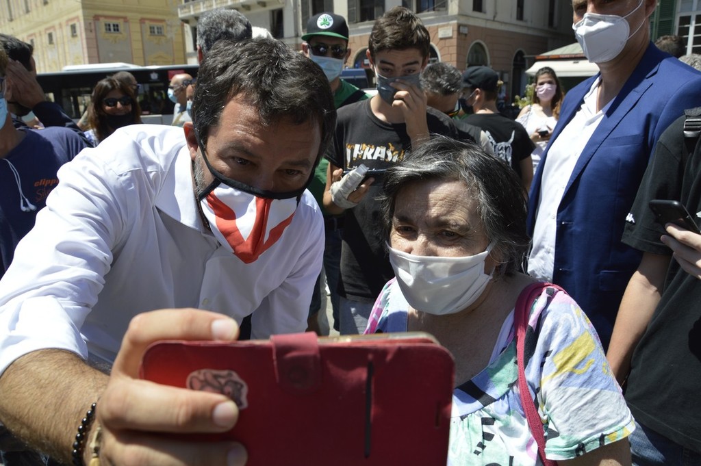 Dopo la mattinata trascorsa prima a Masone e poi al cantiere del nuovo Ponte di Genova, infatti, il segretario leghista è arrivato in piazza De Ferrari per partecipare alla conferenza stampa con Toti e Bucci e la senatrice Stefania Pucciarelli, e per salutare i militanti, anche se non sono mancate neanche le contestazioni durante i selfie.