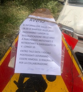 La proprietà annuncia lavori di riqualificazione intorno al civico 10 di via Longo, invitando a rimuovere i veicoli. I residenti non ci stanno: se l’area verrà palettata, dovranno poi pagare un canone d’affitto mensile