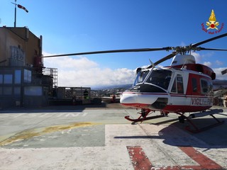 L'elicottero dei vigili del fuoco di Genova è stato impegnato in una missione di trasporto neonatale con l'equipe Sten (Servizio emergenza trasporto neonatale) dell'ospedale Gaslini