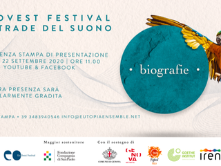 Il 22 settembre alle 11 verrà presentata la nuova edizione del festival musicale ‘EstOvest-Le strade del suono’ con una diretta streaming sul canale youtube e sulla pagina facebook di Eutopia Ensemble: il tema sarà “Biografie”, significativo che il sostantivo sia al plurale perché in questo modo si sottolinea come i percorsi, le tracce artistiche, le scelte esistenziali e gli avvenimenti fortuiti siano tutti potenzialmente interessanti, ugualmente affascinanti.