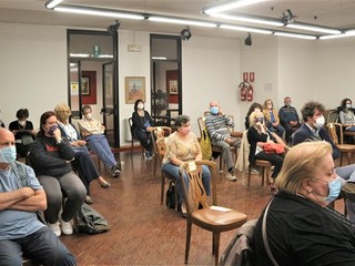 Un pubblico numeroso ha gremito la sala della Famija Moncalereisa in via Alfieri 40 a Moncalieri in ogni ordine di posto, rispettando il distanziamento e nel pieno rispetto delle norme di sicurezza. All’incontro hanno partecipato lo scrittore e attore Bruno Gambarotta, i rappresentanti dell’Associazione Ristoranti della Tavolozza, Roberto Pisani e Claudio Porchia e gli autori Edoardo Toia e Tiziano Gaia insieme con il presidente della “La Famija Moncalereisa”, Domenico Giacotto.