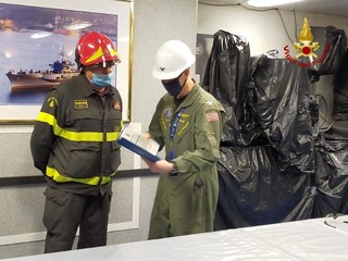 Vigili del fuoco di Genova insigniti di una targa per un intervento di soccorso sulla Navy Mount Whitney (FOTO)
