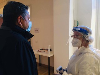 Toti in visita al nuovo punto per tamponi rapidi dell’Asl3 a Villa Bombrini (FOTO)