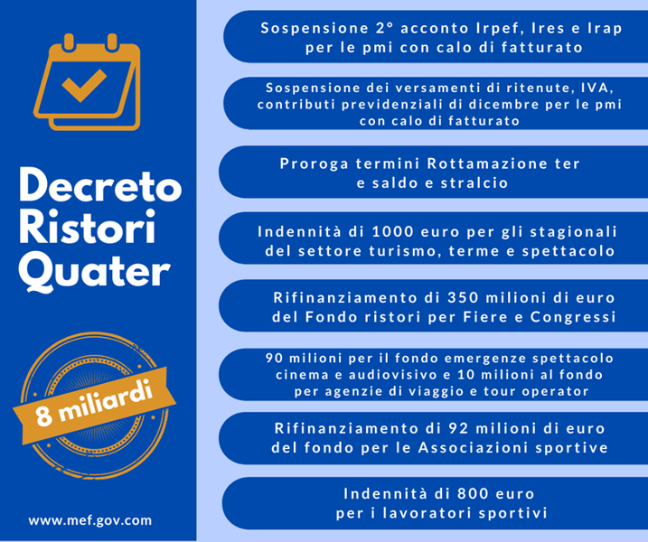 Covid, varato il decreto 'Ristori quater': in arrivo altri otto miliardi d'aiuti alle attività e ai lavoratori colpiti dalla crisi