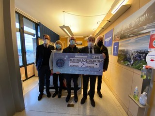 Un contributo economico per i buoni spesa alimentari comunali, per un totale di 7.845 euro, e una bandiera “artistica” della Città, con gli auguri del Cardinale Angelo Bagnasco.