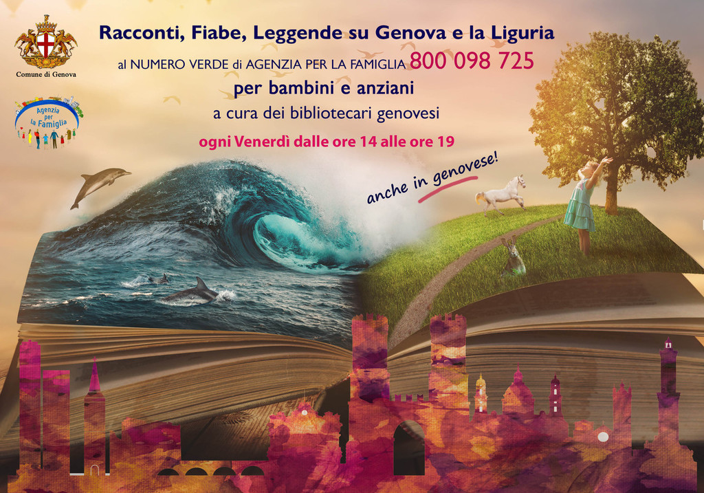 Favole al telefono, ma anche racconti e leggende, per bambini e anziani, offerti dall'Agenzia per la famiglia in collaborazione col sistema bibliotecario del comune di Genova: il tema è "Genova e la Liguria"