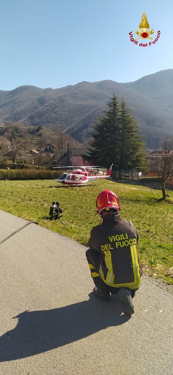 Il Drago dei Vigili del fuoco ha provveduto al trasporto in ospedale mentre la squadra di Busalla prestava assistenza all'atterraggio e decollo del velivolo