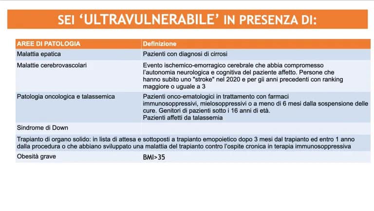 Nei prospetti tutte le informazioni sulla classificazione degli ultravulnerabili e vulnerabili in base alla patologia: