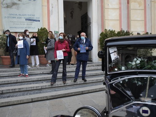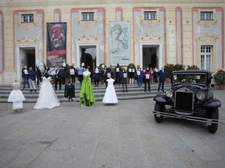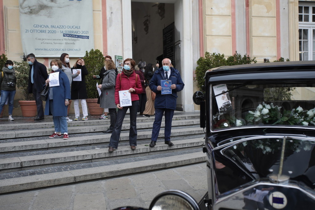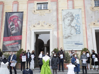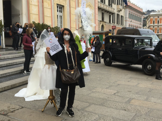 Manifestazione in piazza De Ferrari delle professioni del comparto wedding, per richiedere una data certa della ripartenza dei matrimoni e ricevimenti.