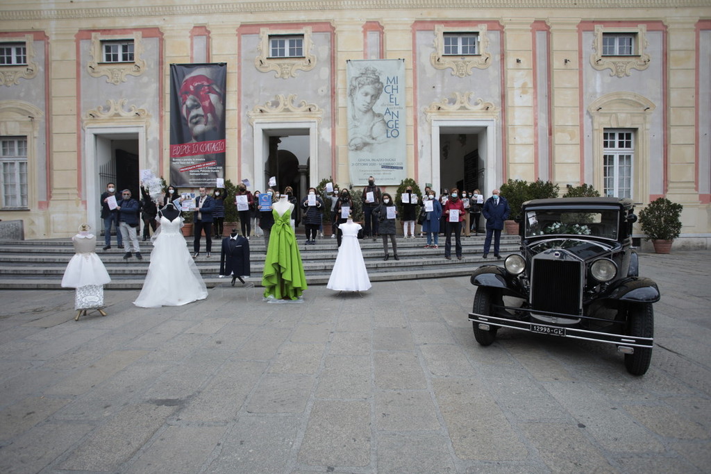 "Nel 2020 sono stati annullati l’85% dei matrimoni, alla cui organizzazione avevamo lavorato con fatica e professionalità, ritrovandoci così a dover riprogrammare decine e decine di cerimonie per cercare di tutelare sposi e fornitori", esordisce Ilaria Veggi, wedding planner, organizzatrice della piazza genovese insieme ad Antonella Calomino. "Ora vediamo ripartire le crociere, dove si canta, balla, beve e mangia proprio come ad un matrimonio, e non comprendiamo perché invece a noi non sia concesso ricominciare. Quello che chiediamo è, semplicemente, di poter lavorare, certe di poterlo fare in piena sicurezza, attraverso protocolli rigorosi e linee guida precise".