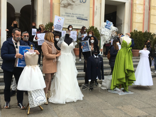 I manifestanti hanno raccolto l'appello del comitato promotore dallo slogan 'Insieme per il wedding', sostenendo l'iniziativa che rivendica misure di aiuto per il comparto, con il supporto di Confesercenti.