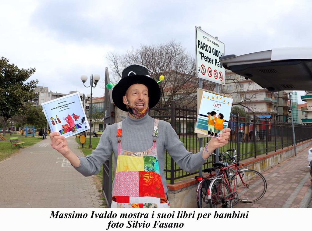 Ad Albenga, all'ingresso del parco giochi Peter Pan di via Dalmazia, abbiamo incontrato un personaggio particolare: Massimo Ivaldo, pietrese di nascita. Vive a Genova e fa l'attore teatrale. La passione di recitare la coltiva sin da ragazzino (ha 51 anni). Si è laureato in lettere moderne a Genova (suo docente è stato il prof. Trovato di Loano).