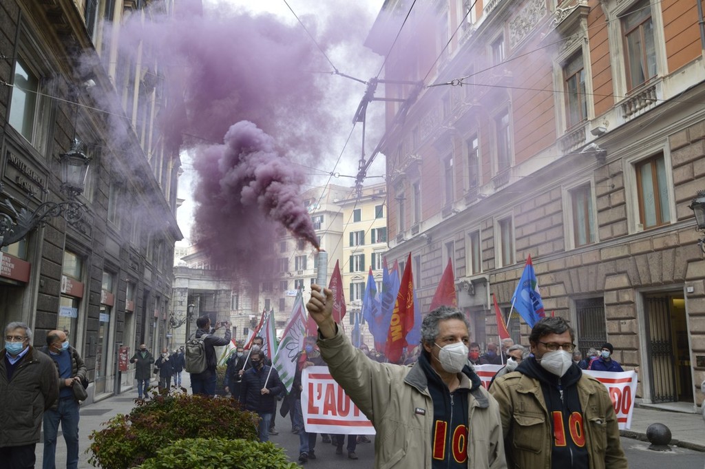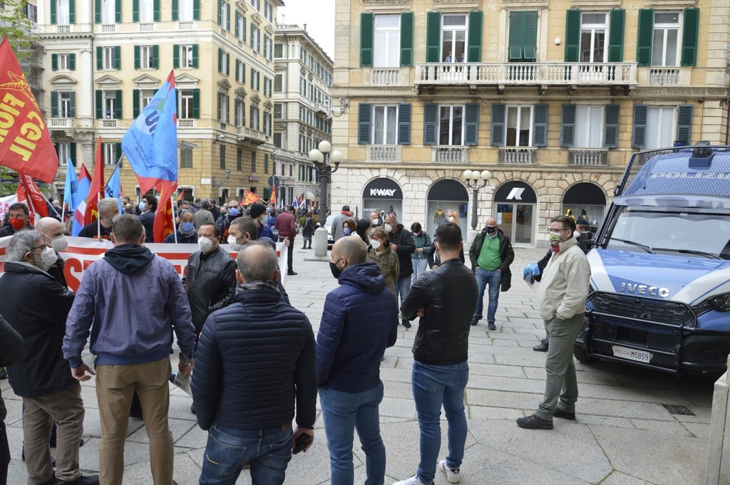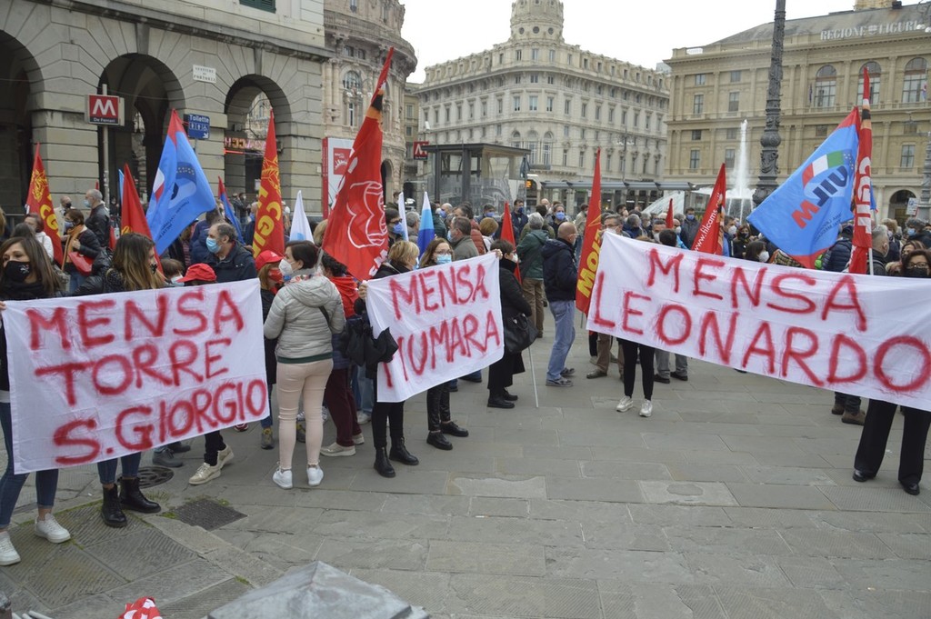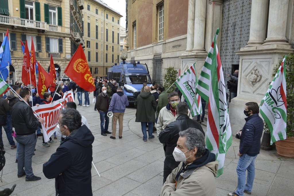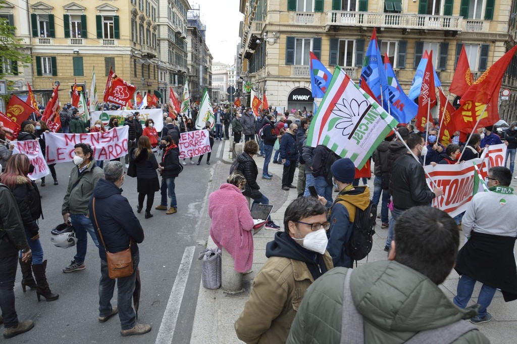 I lavoratori di Leonardo oggi in piazza con Fim, Fiom e Uilm per rivendicare che il reparto Automazione,400 persone impiegate nell'area genovese, rimanga all’interno del gruppo.
