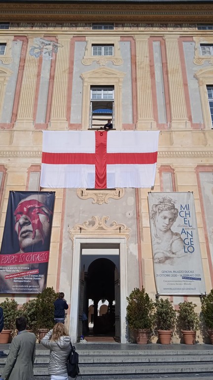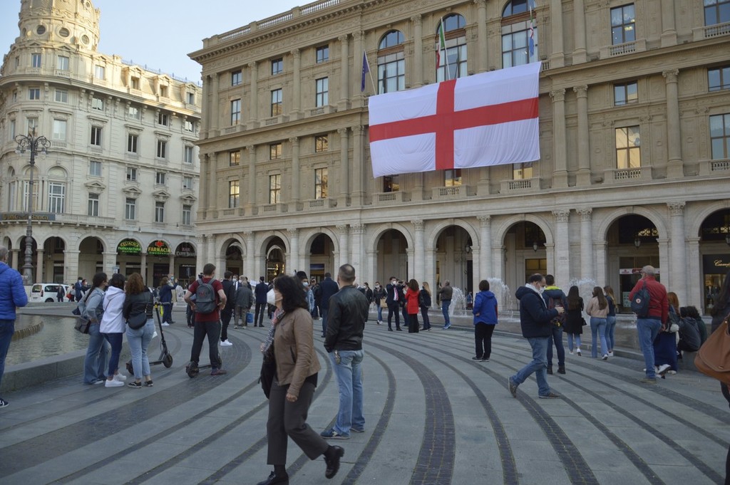 Genova si prepara alla Festa della Bandiera, che si celebrerà domani, 23 aprile nel giorno di San Giorgio. Le prime bandiere sono state montate sulla facciata del Teatro Carlo Felice in piazza De Ferrari, sull’Arco di Trionfo in piazza della Vittoria, sulla Torre Grimaldina e sulla facciata di Palazzo Ducale. Questa sera, alle 18.45, il sindaco Bucci parteciperà allo srotolamento della bandiera di San Giorgio sulla facciata del Palazzo della Regione Liguria insieme al presidente Giovanni Toti.