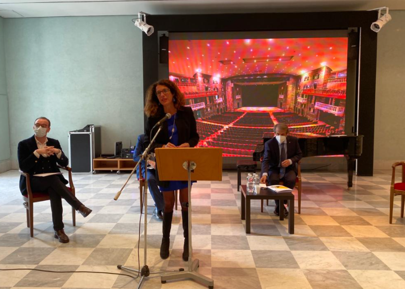 Nel foyer del Teatro l'Assessore regionale alla Cultura e agli Spettacoli Ilaria Cavo partecipato alla conferenza stampa per la presentazione della 'Maratona musicale' in occasione della riapertura al pubblico.