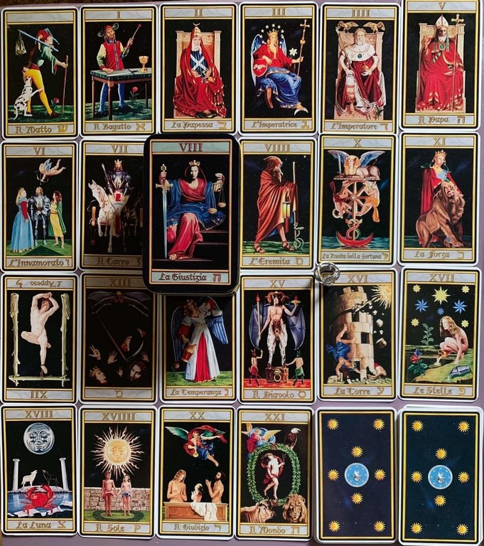 E poi ci sono i tarocchi, altra grande specialità del pittore; 78 tavole, le più grandi del mondo, ciascuna da un metro per 1,75. In totale opere da due tonnellate se messe insieme e che supererebbero i 140 metri di altezza se fossero poste l’una sull’altra. Piterà ha però realizzato anche tarocchi formato normale, dimensioni come le carte, per cartomanti e segni zodiacali, dove i simboli classici acquistano forme particolari e originali. Artista unico insomma, nato con lo spirito creativo nel dna, perché se ora ha i capelli bianchi, la sua prima mostra l’ha fatta quando aveva 16 anni. Un moderno erede di Caravaggio che ama ed ammira, come confessa lui stesso: “Amo Caravaggio, mi piace la sua tecnica, ma non uso sempre colori scuri. I dipinti che ho fatto su Venezia, ad esempio, non sono scuri e uso poco i colori. Amo la penombra, a volte invece la luce, dipende da tematica ed oggetti che descrivo”.