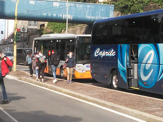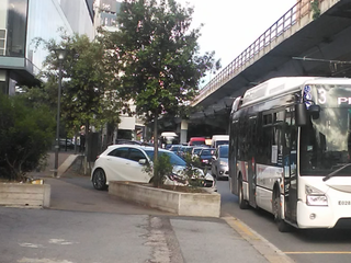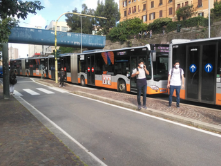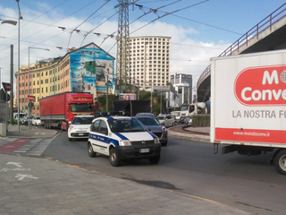 Caos traffico a Genova verso il centro città direzione levante con auto e bus bloccati sulla carreggiata.