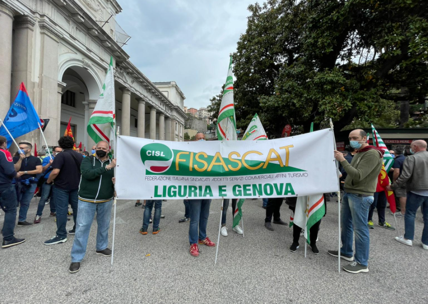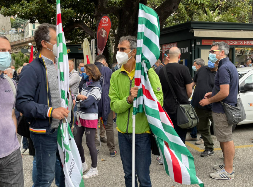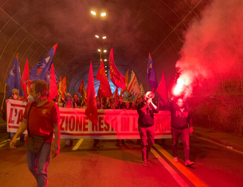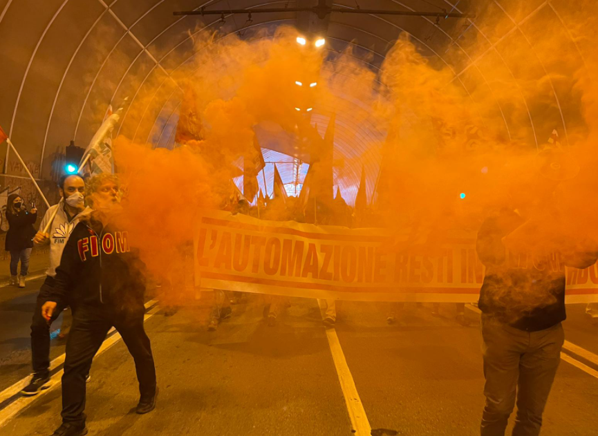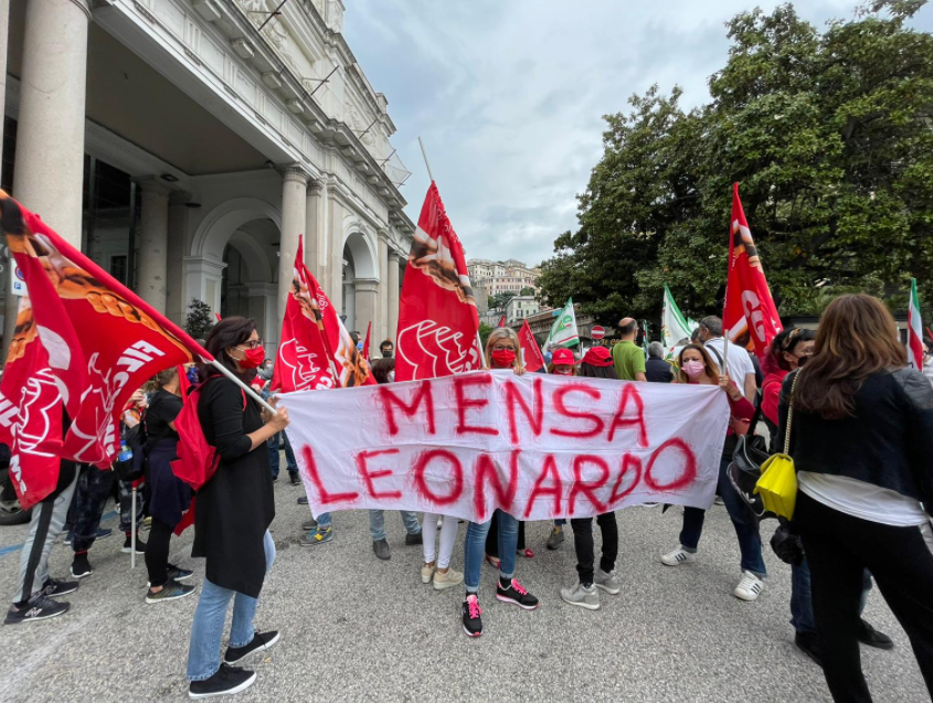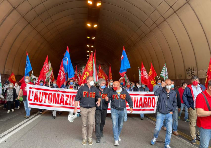 Nuovo presidio per il lavoratori di Leonardo Genova che nel capoluogo ligure, proclamato da Fim Fiom Uilm, a sostegno della vertenza relativa alla B.U. Automazione.