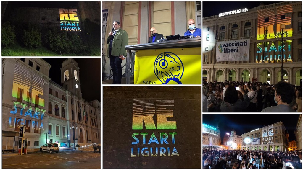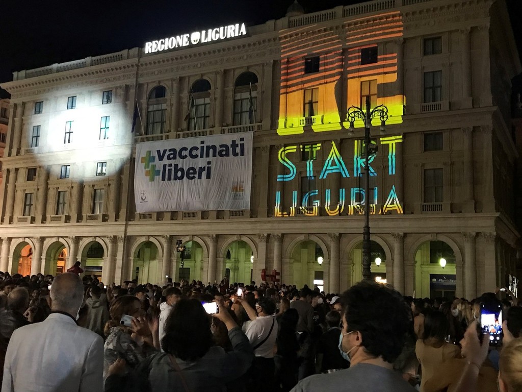 Un conto alla rovescia per illuminare il palazzo di Regione Liguria in Piazza De Ferrari e contemporaneamente il palazzo del Municipio di Imperia, il Priamar di Savona e il Castello di San Giorgio alla Spezia e salutare così l’ingresso di tutto il territorio ligure in zona bianca e la riconquistata libertà.