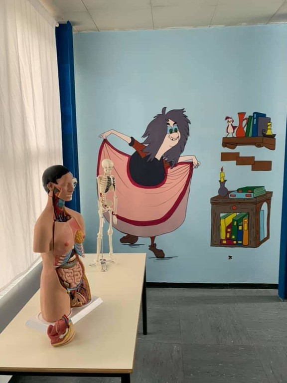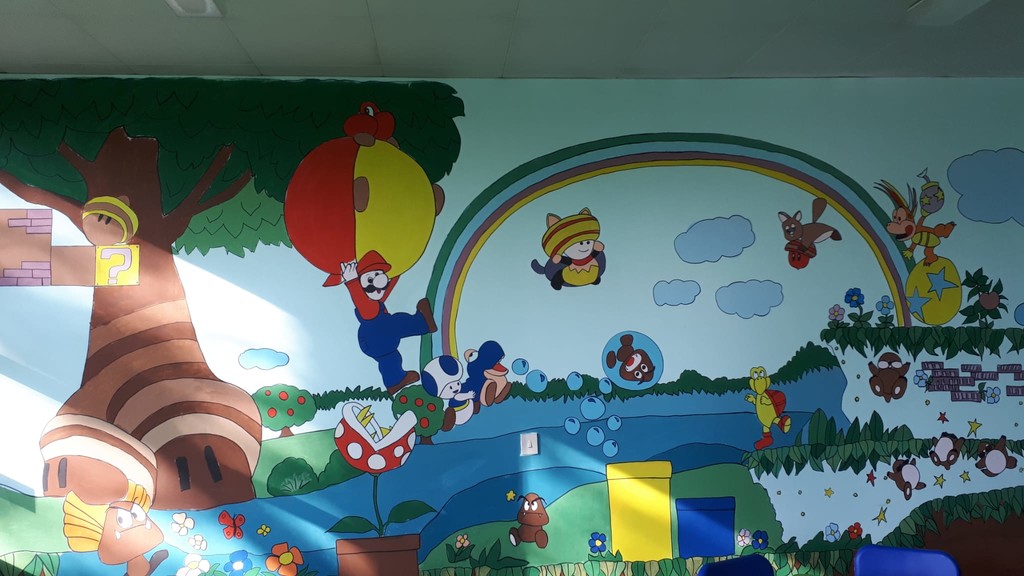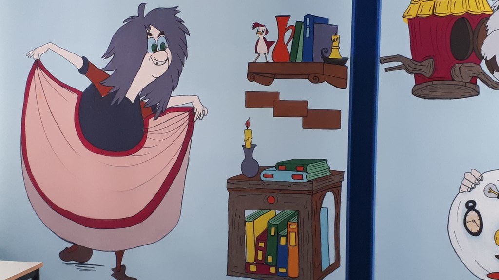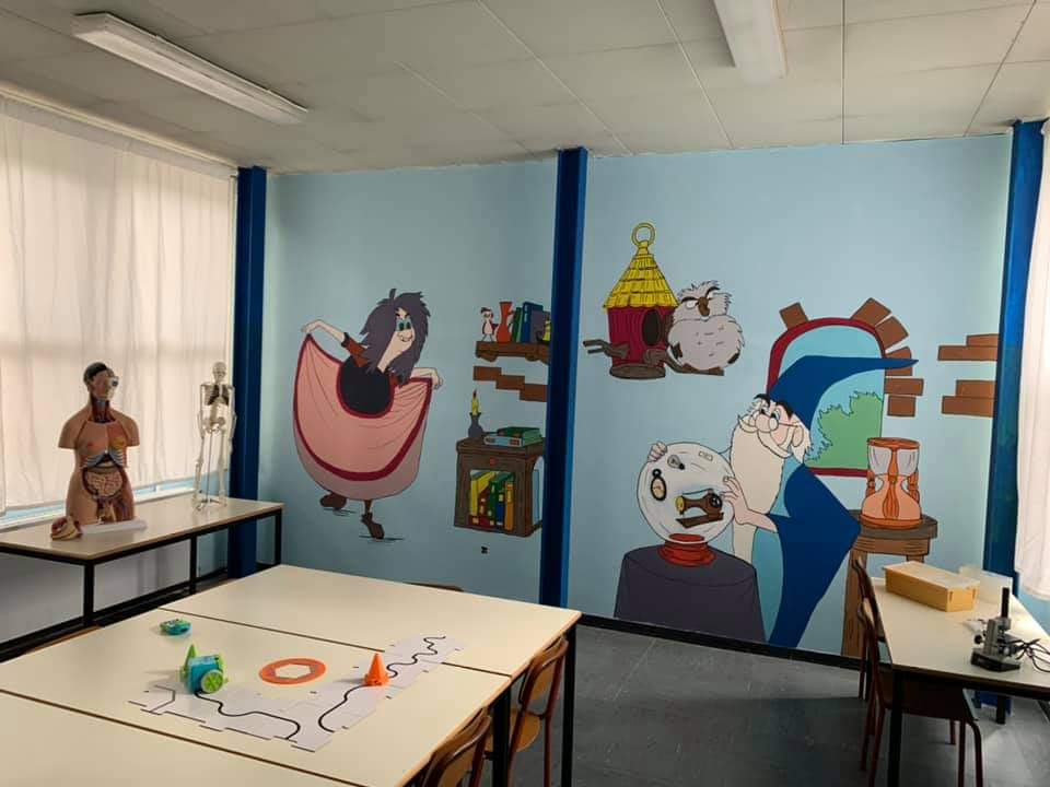 Tracciato con la matita il contorno dei disegni, gli alunni, ognuno in base alla propria età, hanno riempito di colori i muri e trasformato uno spazio anonimo in un luogo caldo e a loro misura. Così i personaggi di Super Mario faranno loro compagnia tutte le volte che entreranno nell’aula multimediale dove c’è la Lim, mentre mago Merlino con l’inseparabile maga Magò saranno nell’aula scientifica insieme a frasi e disegni tratti dal Piccolo Principe e un colorato sistema solare.