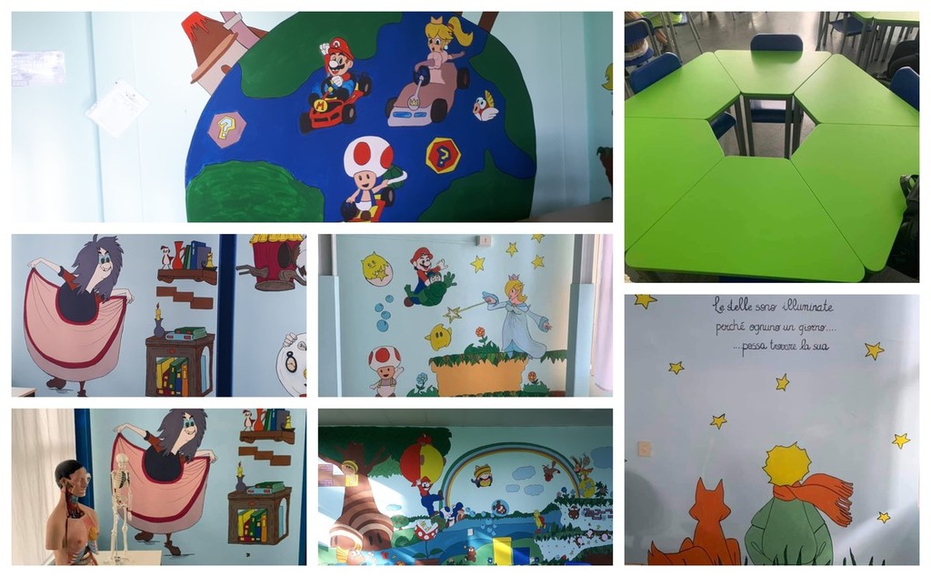 Mago Merlino, il Piccolo Principe, il sistema solare e i personaggi di Super Mario. Alla scuola ‘Borsi’, in via Fratelli Cervi al Biscione, gli alunni della primaria, con l’auto dei genitori, hanno decorato due nuove aule didattiche dove vivere nuove esperienze di studio: “Si tratta di un’aula multimediale con una lavagna Lim e un laboratorio scientifico con sussidi didattici che favoriscono l’apprendimento”, spiega Concetta Santochirico, dirigente scolastica dell’Istituto Comprensivo Quezzi di cui la ‘Borsi’ fa parte.