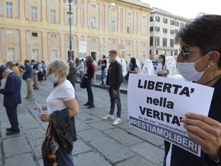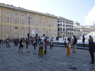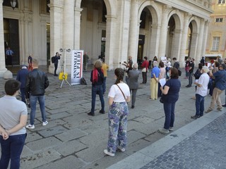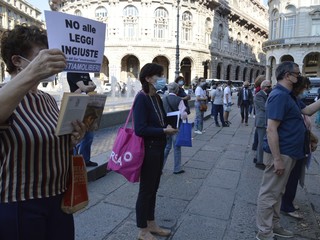 Genova - Si sono ritrovati in piazza De Ferrari esponendo cartelli le Sentinelle in Piedi, per manifestare contro la probabile approvazione del disegno di legge contro la omotransfobia ribattezzato legge Zan, dal cognome dal suo proponente, deputato del Partito Democratico.