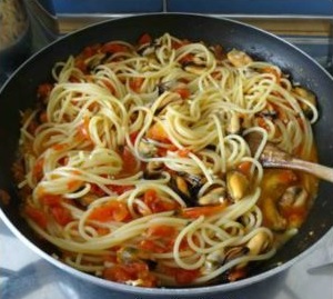 Gli spaghetti alla tarantina sono un piatto di pesce tradizionale, preparato con le cozze tarantine; il vero segreto di questo piatto è il sugo che deve legare tutti gli ingredienti, è una ricetta universale sulle coste italiane, ma un buon primo piatto tipico della Puglia è quello con le cozze alla tarantina. Ciò che fa la differenza rispetto agli altri sughi simili proposti dalla tradizione italiana è visibile in due elementi: la varietà delle cozze tipiche di Taranto e la preparazione originale del sugo con questo tipo di cozze che possiedono delle caratteristiche peculiari, uniche nel loro genere in quanto coltivate in tratti di mare ricchi di polle d’acqua dolce, detti citri o cirri nel Mar Piccolo di Taranto, che le danno un sapore particolare ed unico che viene accentuato nella preparazione del sugo perché c’è il rischio che venga guastato dalla cottura.