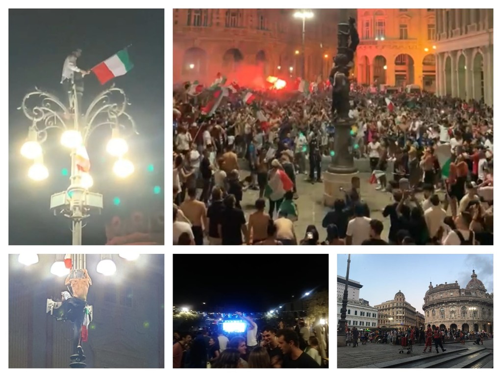C'è chi ha festeggiato salendo su uno dei lampioni in piazza De Ferrari
