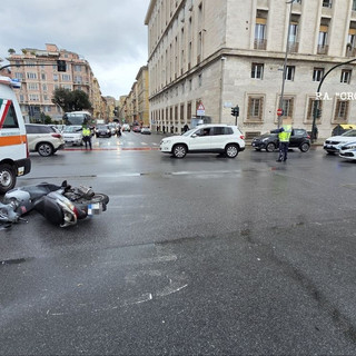 Incidente tra auto e scooter all’incrocio tra Brigate Partigiane e via Diaz: tre persone in ospedale