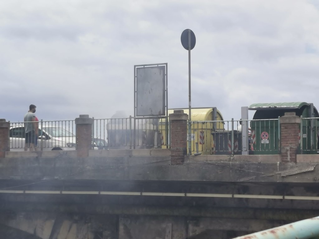 A fuoco un cassonetto in pieno giorno a Sturla (foto)